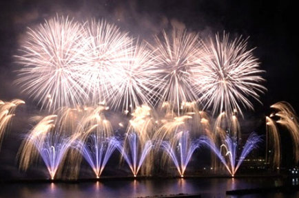 会場である熱海湾は、3面を山に囲まれた「すり鉢」状の地形のため、海で上げる花火の音が反響し、 大きなスタジアムのような音響効果があり、花火業者さんも絶賛する日本一の花火打上会場です。夜空に広がる花火や、水面に映る花火、そして、フィナーレを飾る「大空中ナイアガラ」の美しさは、瞬きを忘れるほど!