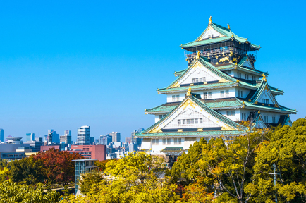 世界各地で、飛行機で大阪に行き、ホテルにチェックインします。