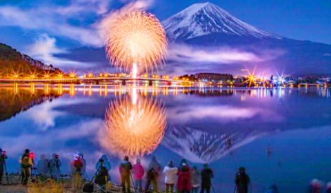 ◆ 冬の富士大輪の花が咲く! 『河口湖冬花火』