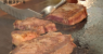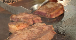 シェフがシェフの前でステーキなどを作ります。